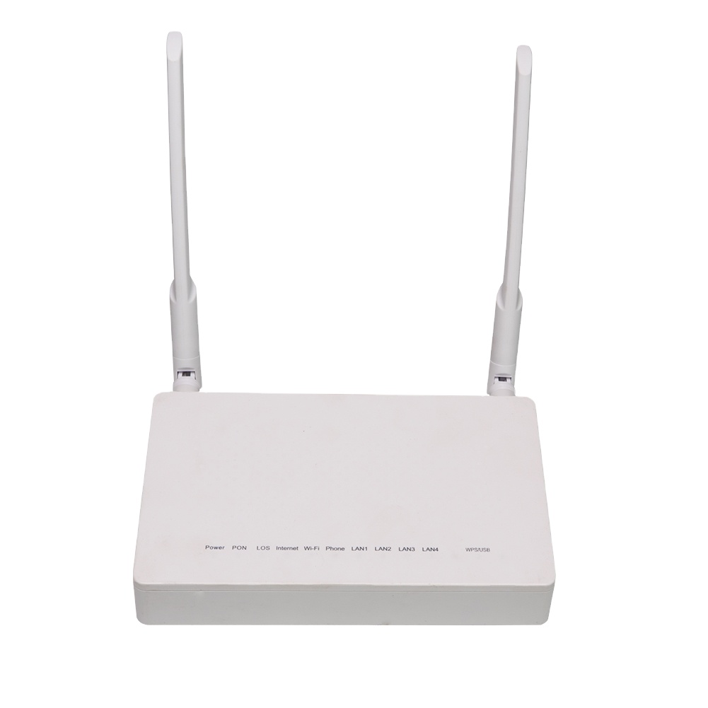 A versatile fiber‑gateway home router with one Gigabit (GE) port, three Fast Ethernet (FE) ports, one telephone (TEL) port, one USB port, and built‑in WiFi with a 5 dBi external antenna—English‑version firmware included. Ideal for home FTTH setups that require voice, USB sharing and solid wired & wireless connectivity.
